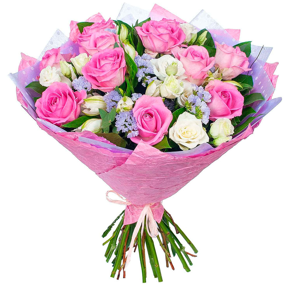 На фото представлен образец. Объем букета зависит от выбранного вами размера. Точное количество цветов и цветовую гамму вы можете уточнить у менеджера по телефону.